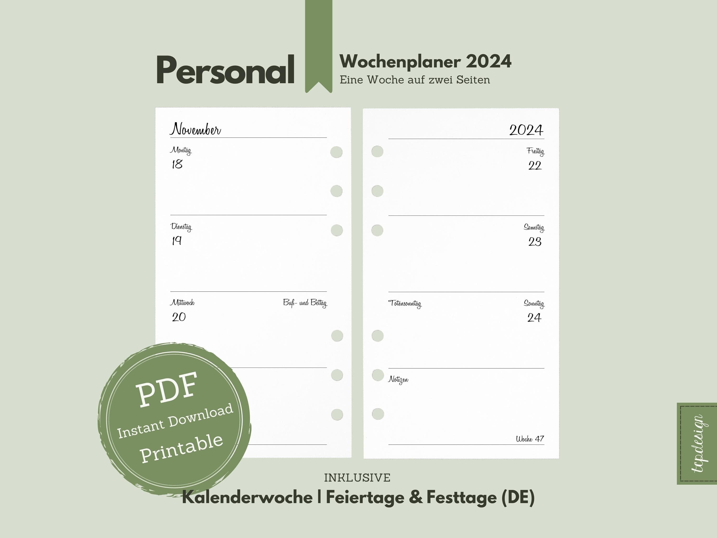 Personal // Weekly Planner 2024 // Weekly Calendar in the Etsy