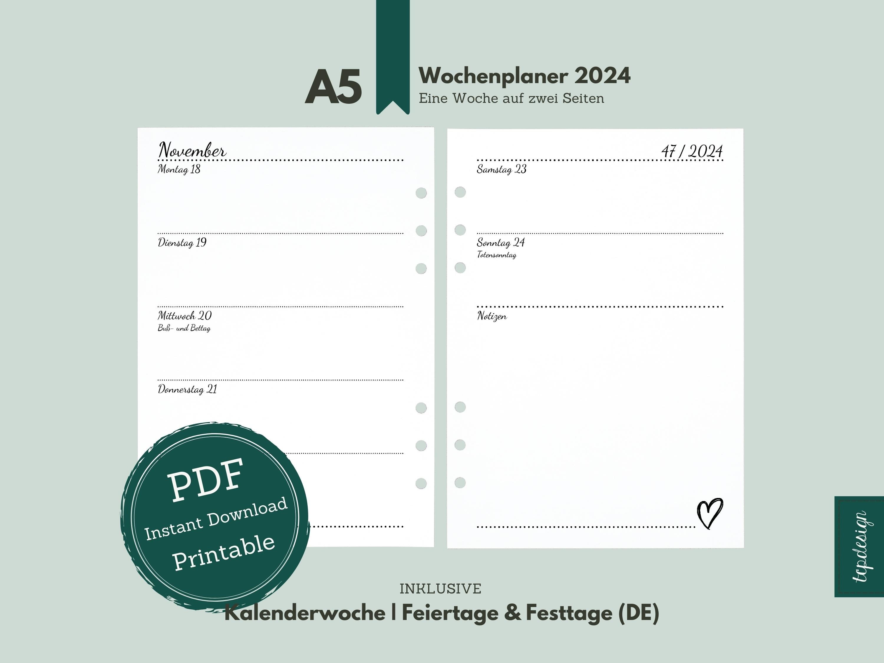 A5 // Weekly Planner 2024 // Weekly Calendar in the Style Etsy