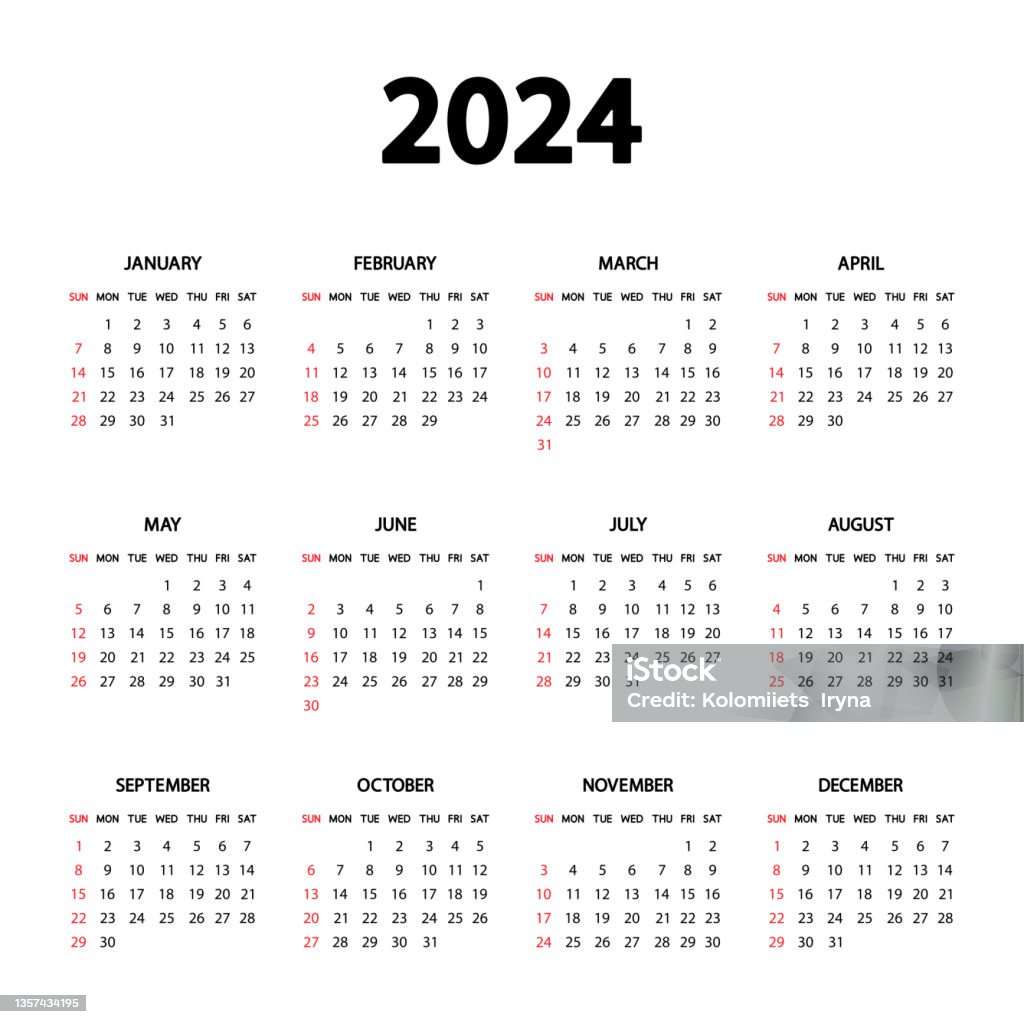 Calendar 2024 Year The Week Starts Sunday Annual English Calendar